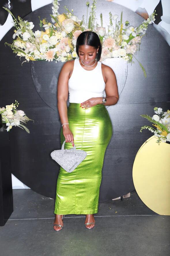 Women High Waist Back Slit Maxi Shiny A-line Skirts Zipper Up Summer Streetwear Party Clubwear